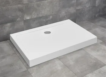 Плоский, прямоугольный акриловый поддон с цельнолитой панелью (с 4 сторон). Предназначенный для монтажа на ножках (в комплекте). Отверстие для сифона Ø90мм по середине длинного бока. Рекомендуемый сифон: R500, R400 Slim.