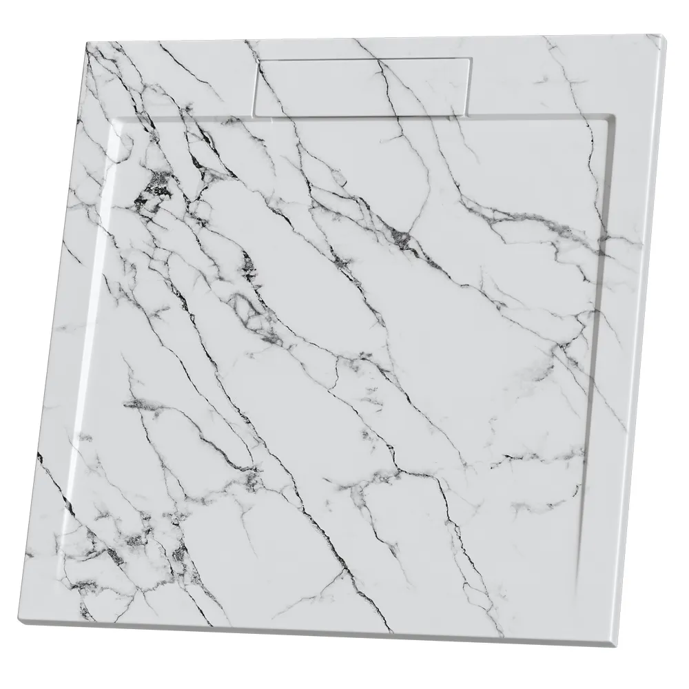 В серии душевых поддонов Stone Tray новинка - поддон в самом актуальном дизайне под натуральный белый мрамор теперь и в квадратной форме.