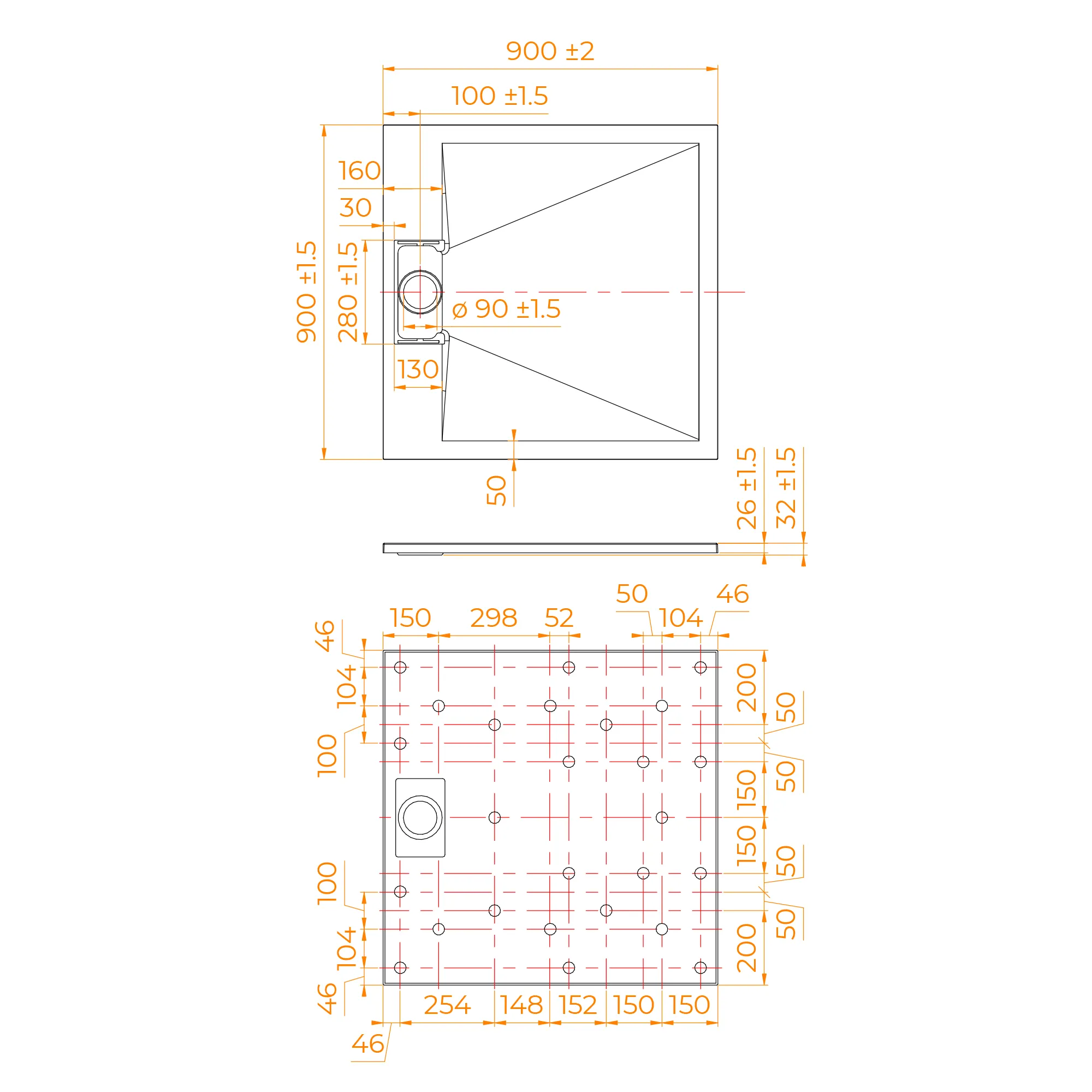 Общая высота поддона: 26 мм.;