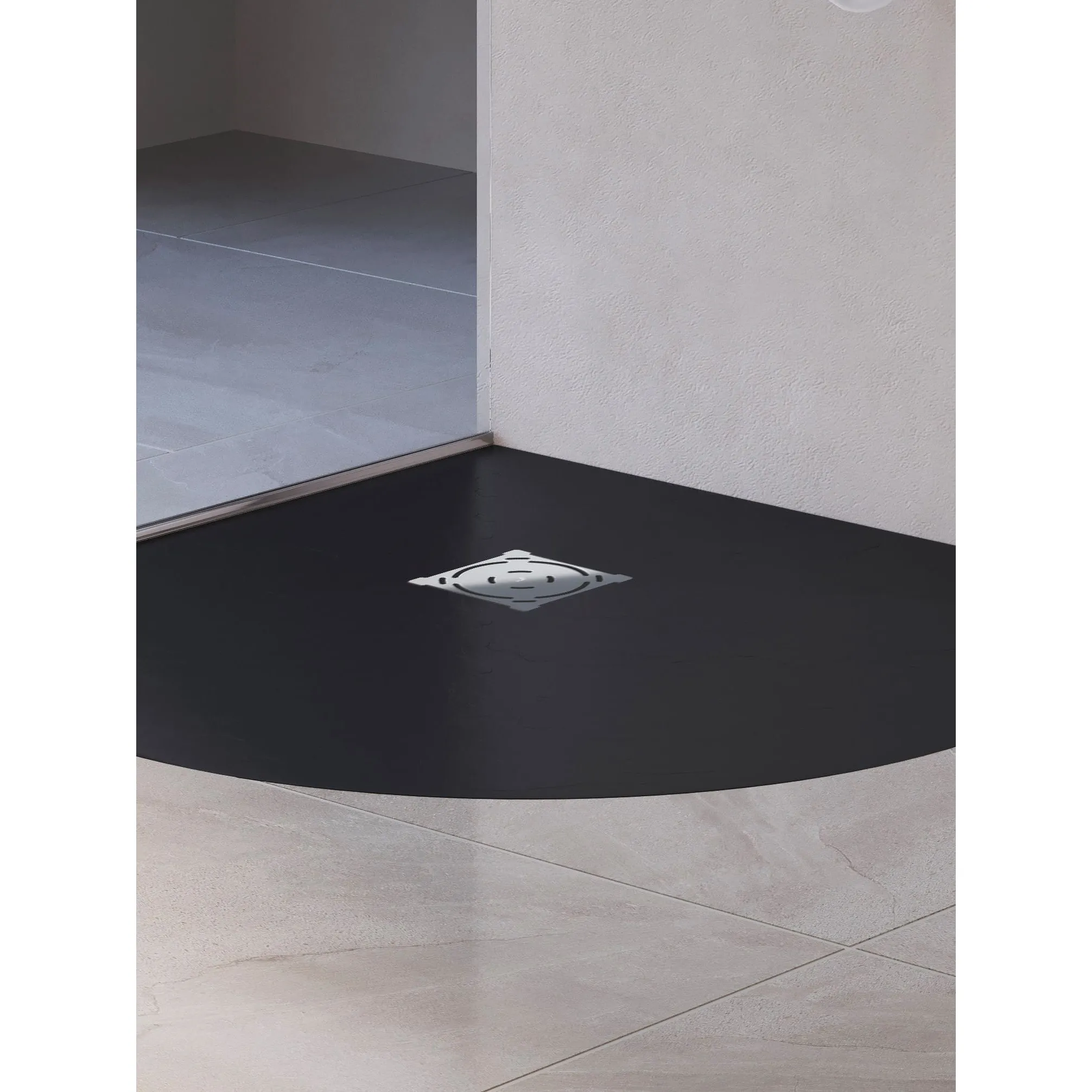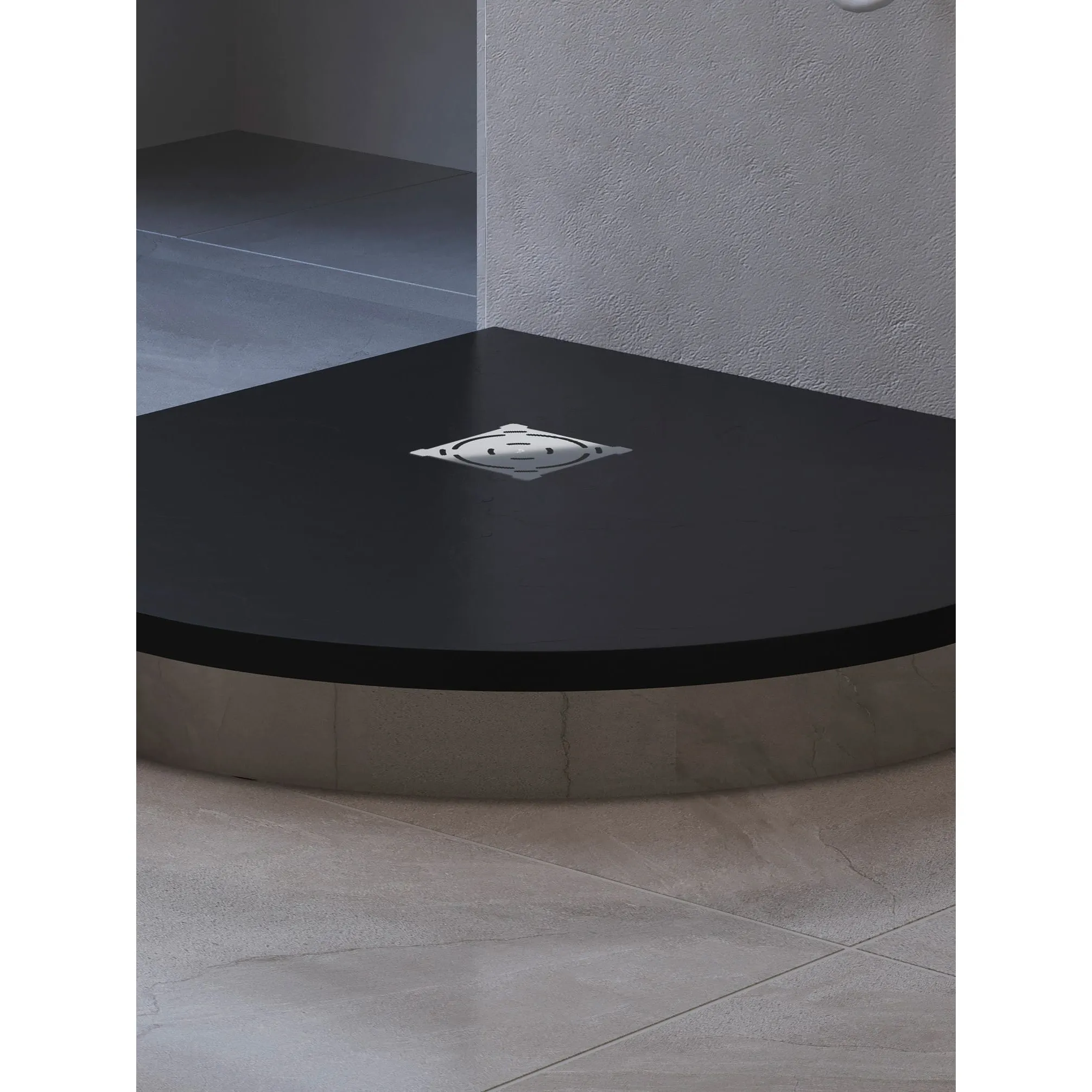 В серии душевых поддонов Stone Tray появилась новинка аккуратной полукруглой формы в остро-модном цвете «графит».