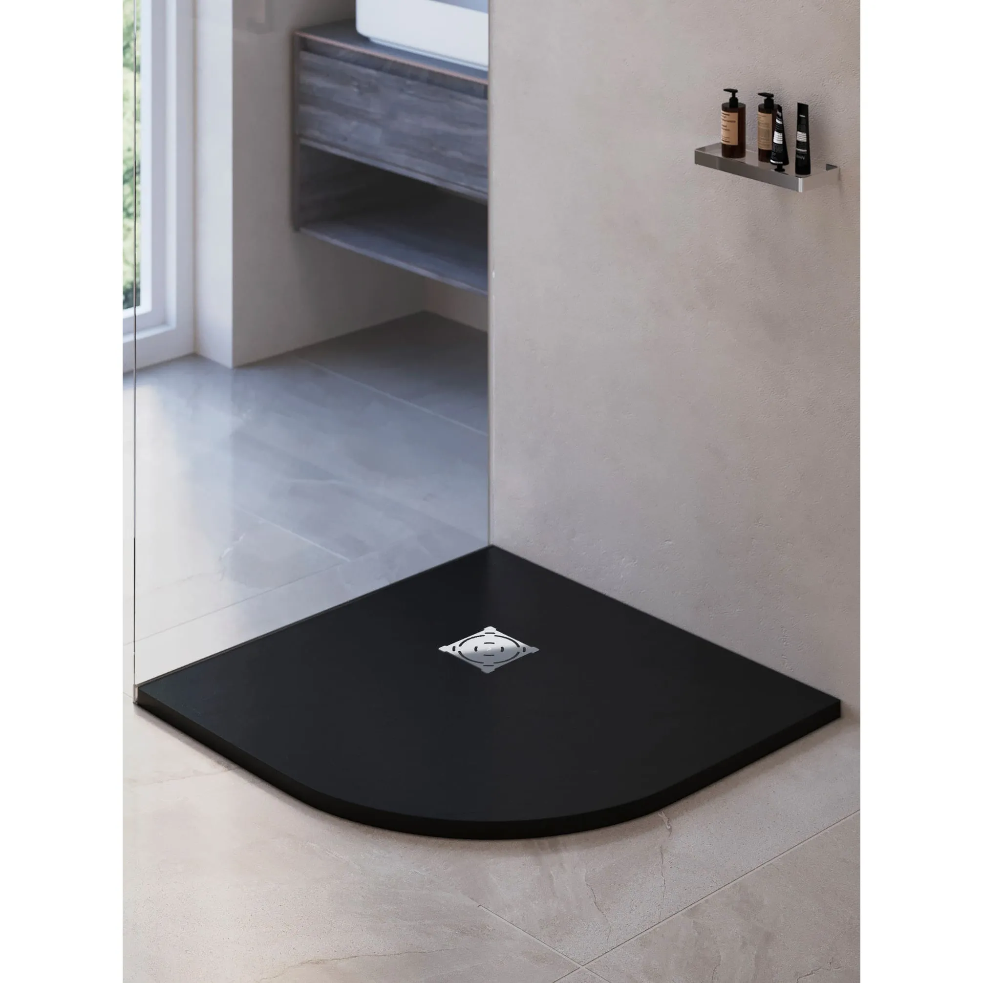 Сдержанный темно-серый цвет впишет поддон в любой интерьер, сделав особый комплимент стилям лофт и хайтек, и позволит реализовать самые яркие идеи в остальном декоре ванной комнаты.