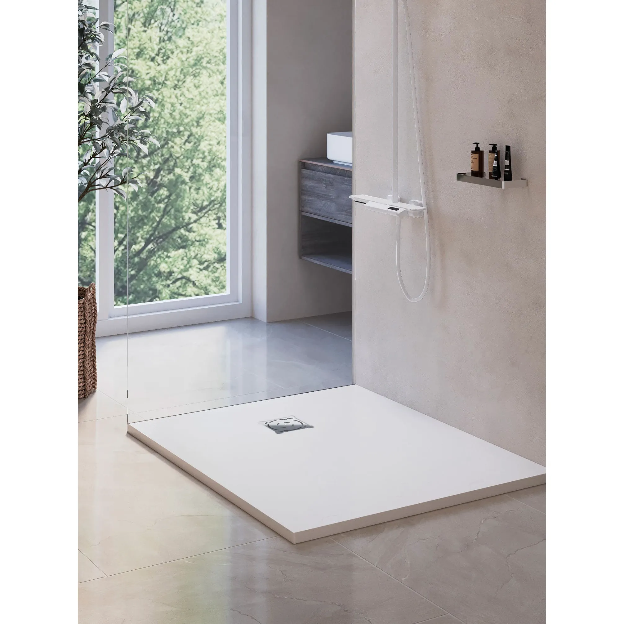 Новый поддон — это самостоятельный аксессуар вашей душевой. Универсальный цвет, откликающийся на уровень освещения, и текстура “под камень” идеально сочетаются с интерьерами от смелых лофт и хайтек до романтичного прованса, а решетка из нержавеющей стали, защищающая слив, создаст безупречный аккомпанемент душевым системам, а таком же оттенке.