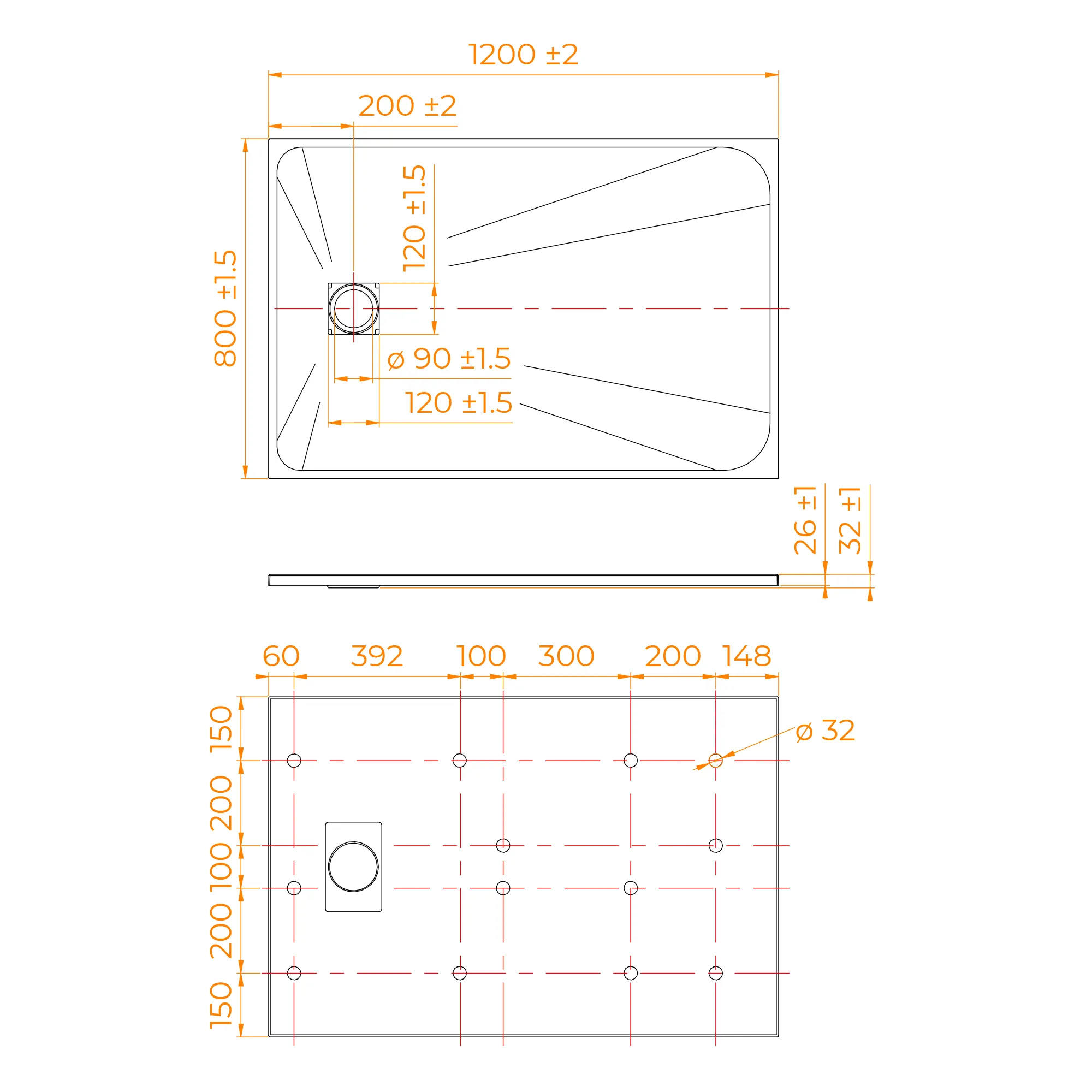 - Длина и ширина: от 800х1000 мм до 900х1200 мм. Поддон с широким размерным рядом даёт возможность подобрать оптимальный вариант для вашей ванной комнаты.