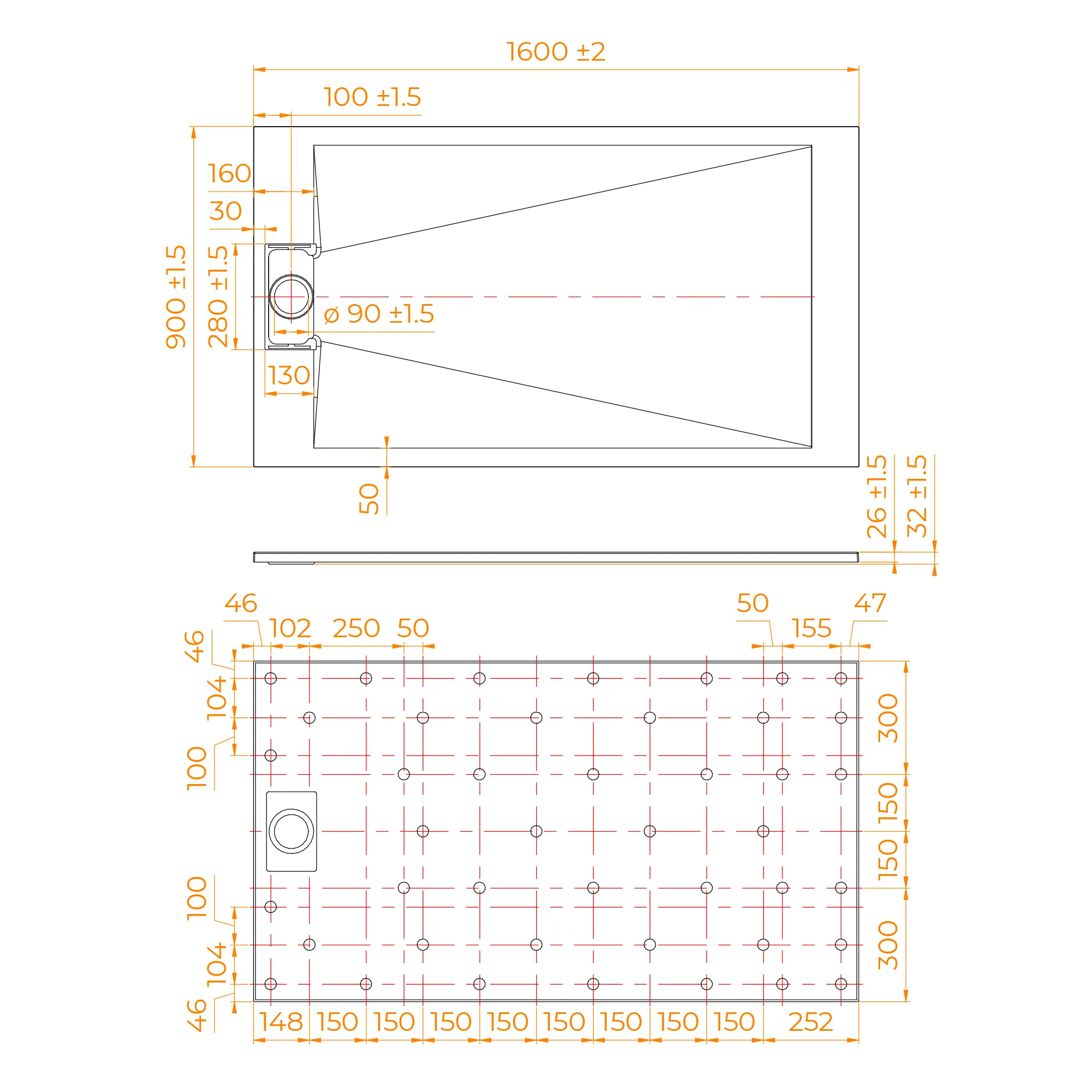 Общая высота поддона: 26 мм.;