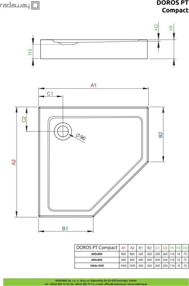 Плоский, 5-угольный акриловый поддонй с цельнолитой панелью (с 5-ти сторон). Предназначенный для монтажа на ножках (в комплекте). Отверстие для сифона Ø90мм по середине длинного бока. Рекомендуемый сифон: R500, R400 Slim.