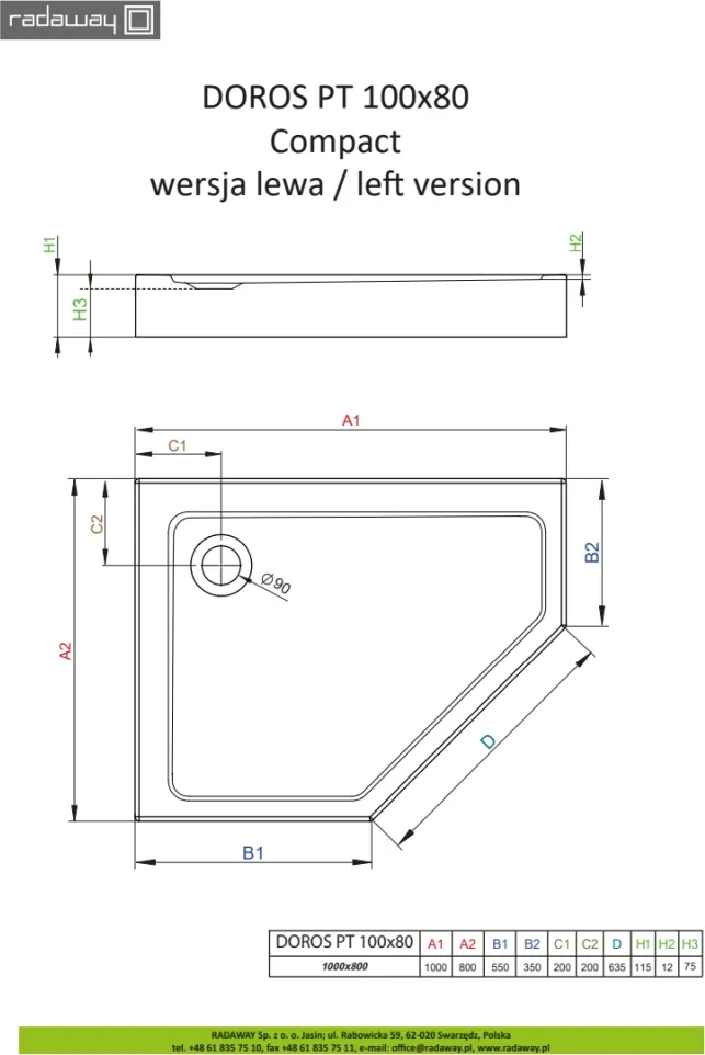 Плоский, 5-угольный акриловый поддонй с цельнолитой панелью (с 5-ти сторон). Предназначенный для монтажа на ножках (в комплекте). Отверстие для сифона Ø90мм. Рекомендуемый сифон: R500, R400 Slim.