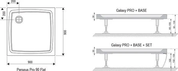 Квадратный душевой поддон Perseus Pro Flat.