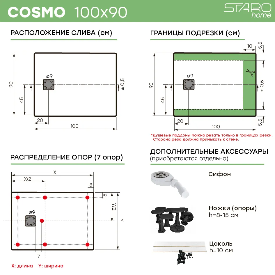 Душевой поддон StaroHome Solid размером 100х90 см выполнен из литьевого мрамора. Прямоугольная форма, поверхность — матовая, в белой расцветке. Идеально подходит для современных интерьеров ванных комнат.