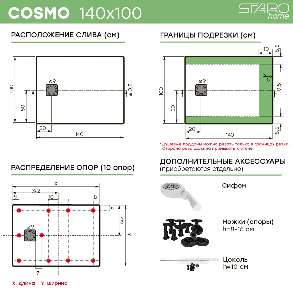Душевой поддон StaroHome Solid размером 140х100 см выполнен из литьевого мрамора. Прямоугольная форма, поверхность — матовая, в белой расцветке. Идеально подходит для современных интерьеров ванных комнат.