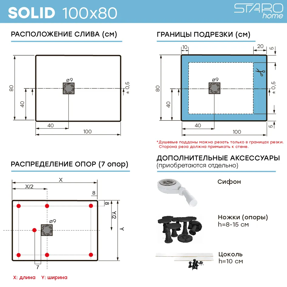 Душевой поддон StaroHome Solid размером 100х80 см выполнен из литьевого мрамора. Прямоугольная форма, поверхность — матовая, в серой расцветке. Идеально подходит для современных интерьеров ванных комнат.