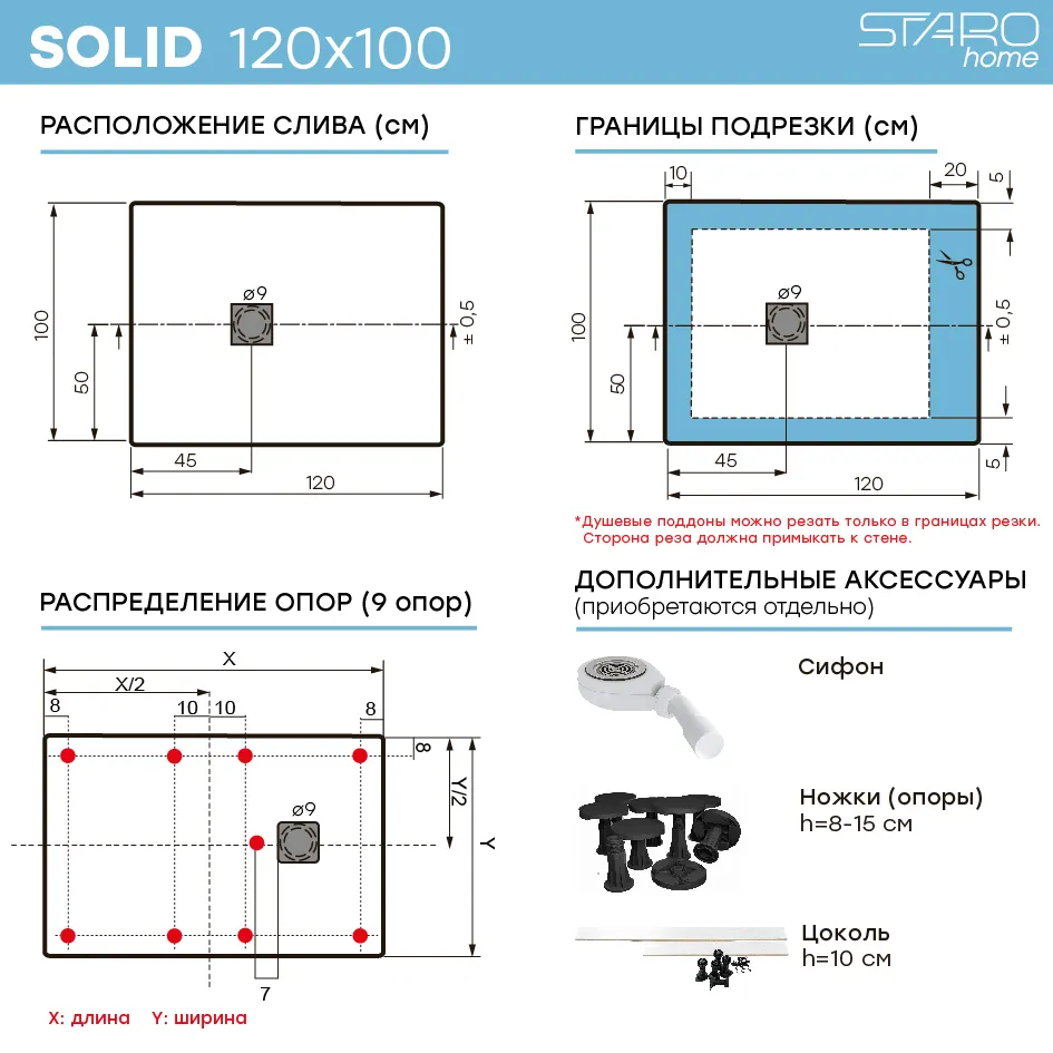 Душевой поддон StaroHome Solid размером 120х100 см выполнен из литьевого мрамора. Прямоугольная форма, поверхность — матовая, в чёрной расцветке. Идеально подходит для современных интерьеров ванных комнат.