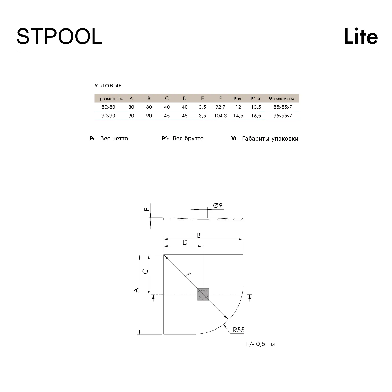 Душевой поддон угловой STPOOL LITE 90х90х3 сm White С0005793