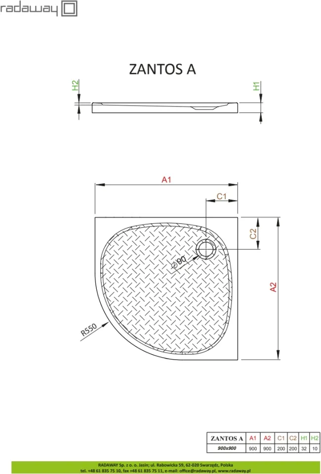 Низкий поддон из литьевого камня для монтажа непосредственно на пол.