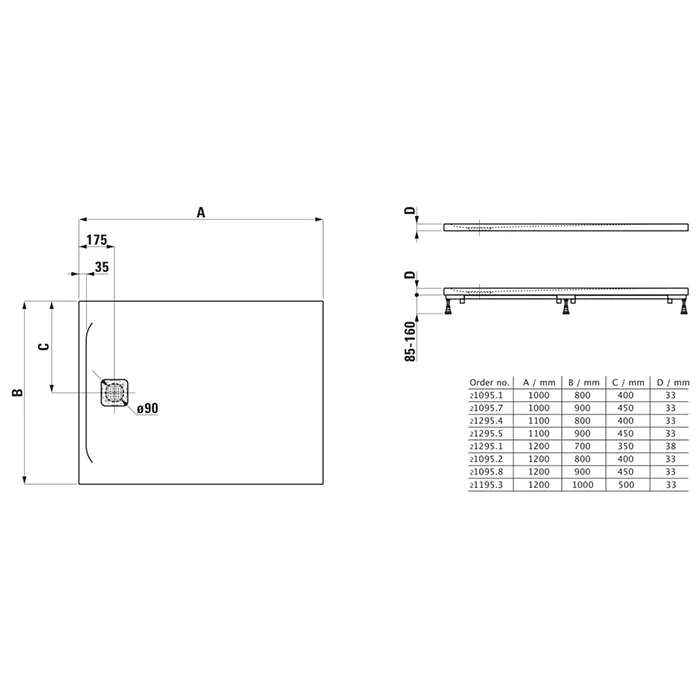 Laufen Pro душевой поддон 1100x800 мм, ультратонкий, прямоугольный, слив по короткой стороне, материал Marbond®, цвет белый матовый