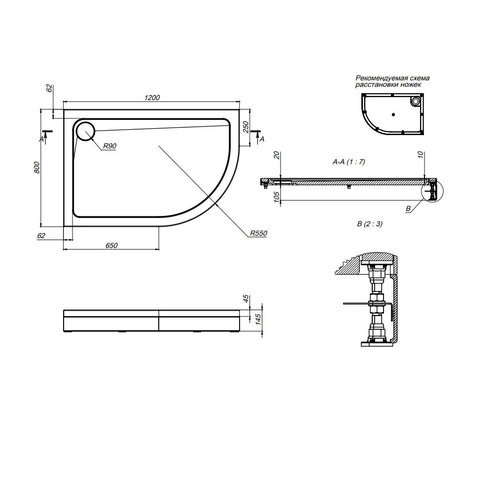 - Высота поддона: 145.0