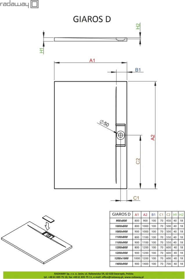 Низкий поддон из литьевого камня для монтажа непосредственно на пол. Форма: прямоугольник. Ножки в комплекте. Высота ножек 100-130мм. Отверстие под сифон Ø 50 мм, рекомендуемый сифон 5SL1.