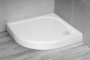 Плоский поддон из жидкого мрамора. Радиус 550, Отверстие под сифон Ø90. Ножки в комплекте. возможность комплектовать передней панелью. Рекомендуемый сифон 690P, TB 90P, R400SLIM, TB21, TBXS