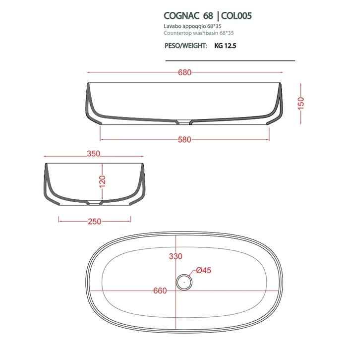 Artceram Cognac Раковина 68х35хh15см, накладная, без отв., без перелива, цвет: giallo zinco COL005 1