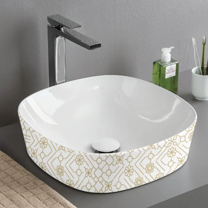 Раковина Artceram Ghost 42, без отв., без перелива, на столешницу, белый глянцевый, декор: El moro GHL001 01 90