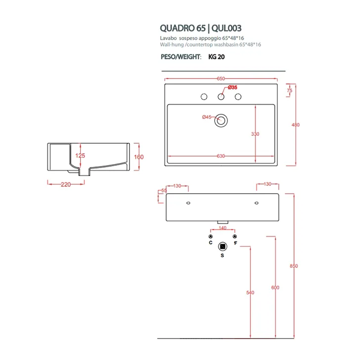 - Форма: Прямоугольная