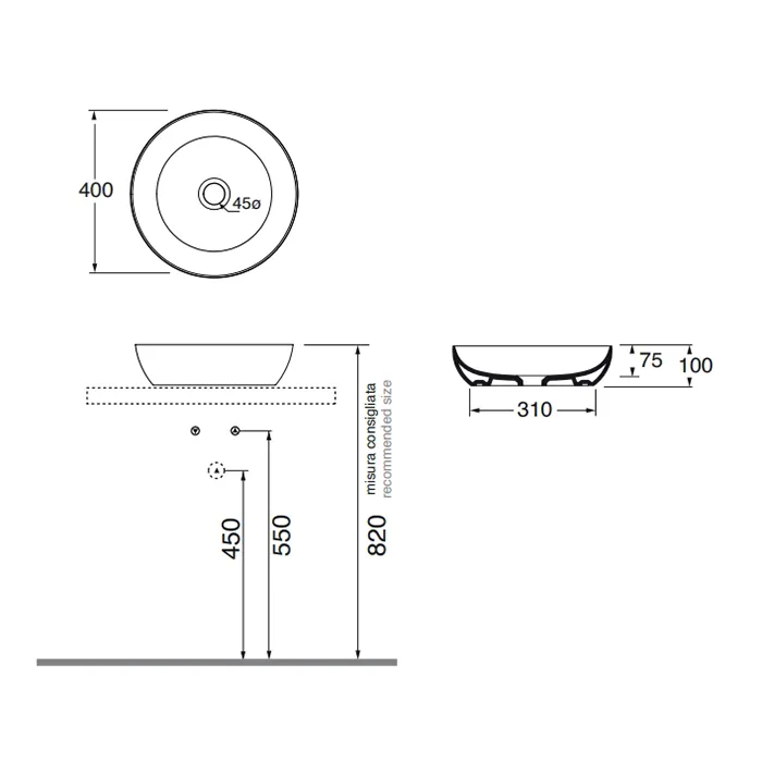 Раковина чаша Azzurra Elegance Circle 40х40х10см без отв. под смеситель, carbone ELLA040100C0CA/(ECI4010 CA)*0