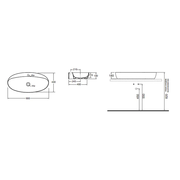 Раковина накладная Azzurra Elegance Circle 90х44см без отв. под смеситель, белый ELLA090440C0BI/(ECI90 bi)*0