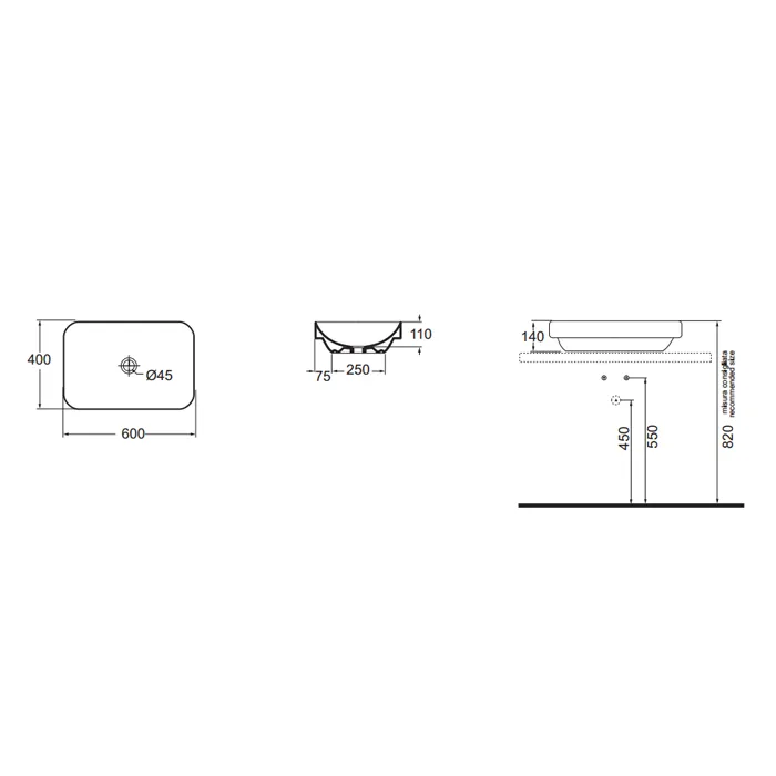 Раковина накладная Azzurra Elegance Soft 60х40см без отв. под смеситель, белый ELLG060400S0BI/(ESO60 bi)*0