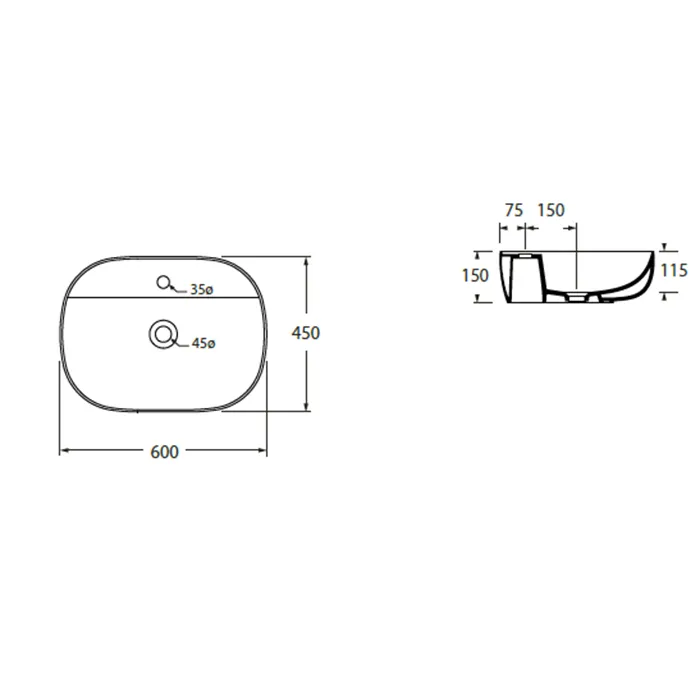Раковина накладная Azzurra Elegance Soft 60х45х115см с 1 отв. под смеситель, белый ELLA060450ZMBI/(ZIP60M bi)*1