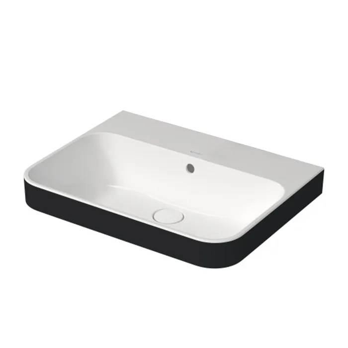 DURAVIT HAPPY D.2 PLUS Раковина 600х460 мм, без отверстий для смесителя, с переливом, с креплением, выпуск с керам клапаном, цв белый/антрацит матовый