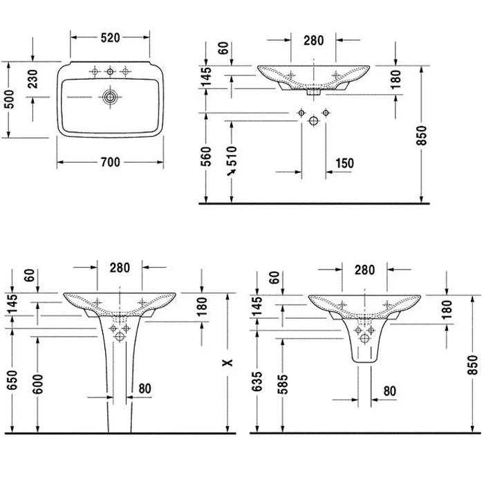 Duravit PuraVida Раковина без перелива, с 1 отв. под смес., с глубокой чашей, включая выпуск с керамической крышкой, 700x500мм, Цвет: Белый