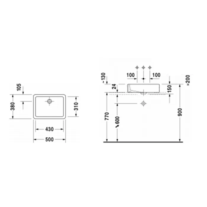 Duravit Vero Раковина, шлифованный вариант, без перелива, без площадки под смес., включая крепление, 500x380мм, Цвет: Белый
