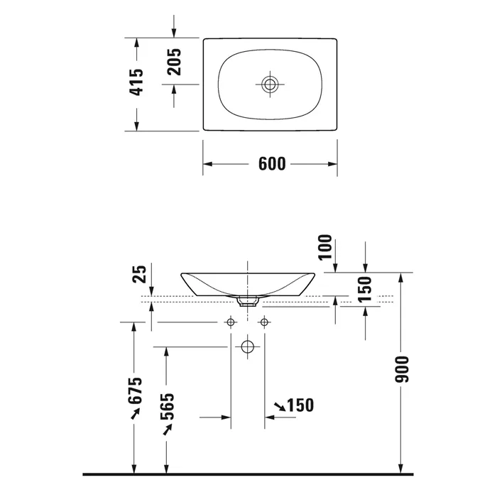 Duravit Viu Раковина накладная 600х415х100мм, без перелива, без отв, с креплением, выпуск с керамической крышкой, цвет: белый