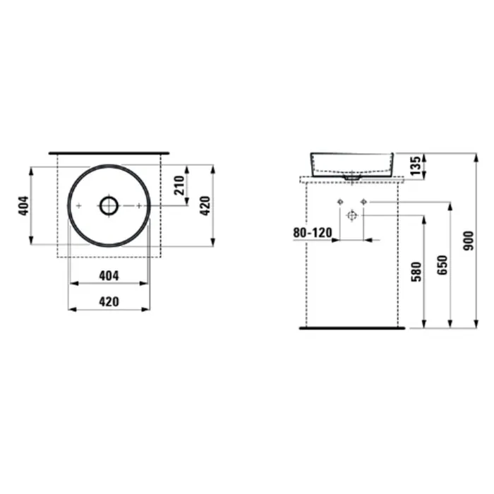 Laufen Kartell Раковина-чаша 420х420х120мм без перелива, без отв. под смеситель, цвет: черный глянцевый
