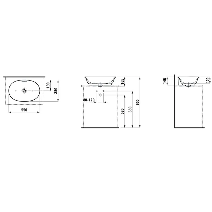 Laufen New Classic Раковина-чаша овальная 500х450х135 мм, без отв под смеситель, с переливом, цвет белый матовый