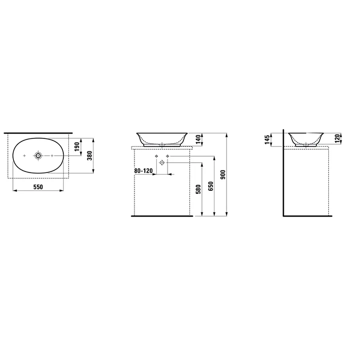 Laufen New Classic Раковина-чаша овальная накладная 550х380х145 мм, без отв под смесит, без перелива, c покрытием LCC, цвет белый
