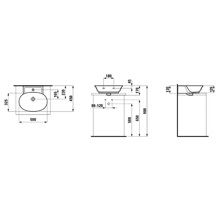Laufen New Classic Раковина-мини накладная 500х450х135 мм, без отв под смеситель,с переливом, цвет белый матовый