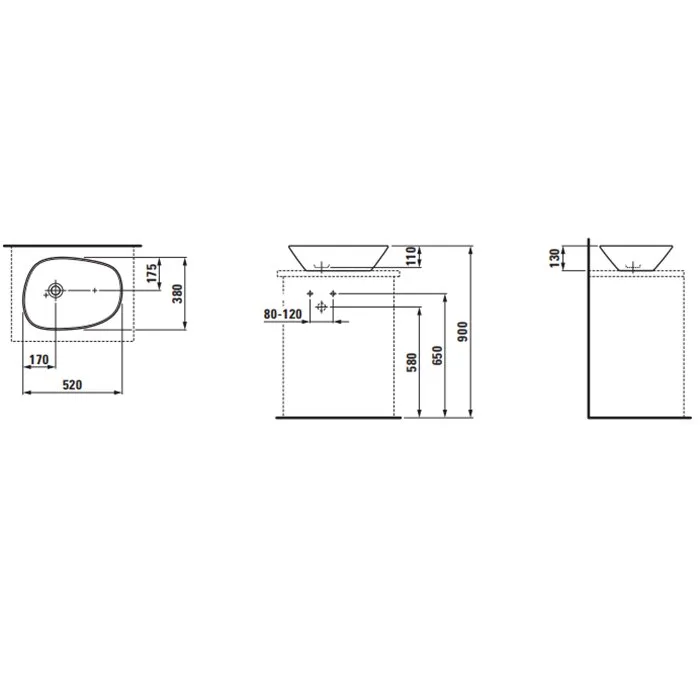 Laufen Palomba Раковина-чаша 520х380х130мм без перелива, без отв. под смеситель, с покр. LLC, цвет: белый
