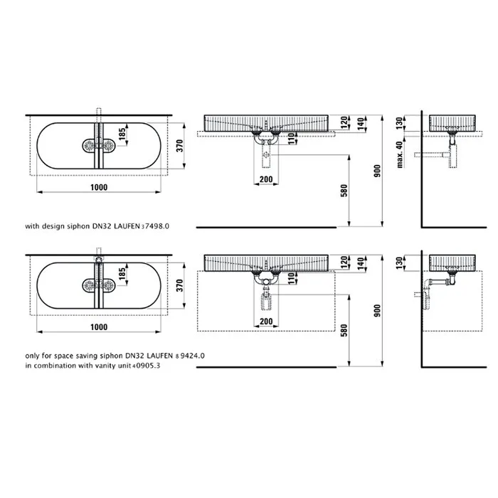 Laufen Sonar Раковина двойная с наружным декором волна 1000x370х130мм без перелива, без отв. под смесит, цвет: белый глян(с керамич крышкой для слива)