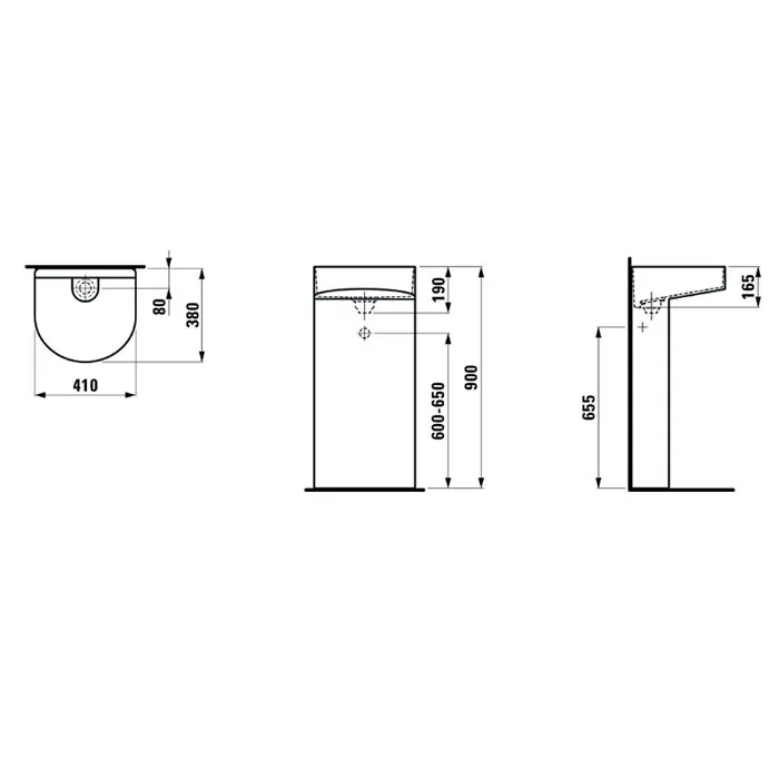 Laufen Sonar Раковина с пьедесталом 410х380х900мм без перелива, без отв. под смеситель, напольная, крепл. к стене, цвет: белый