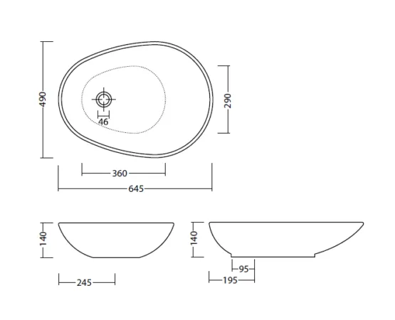 Размеры раковины составляют 64,5 см в ширину, 49 см в глубину и 14 см в высоту. Это позволяет ей гармонично вписаться даже в небольшие пространства. Монтаж на столешницу обеспечивает дополнительную устойчивость и безопасность.