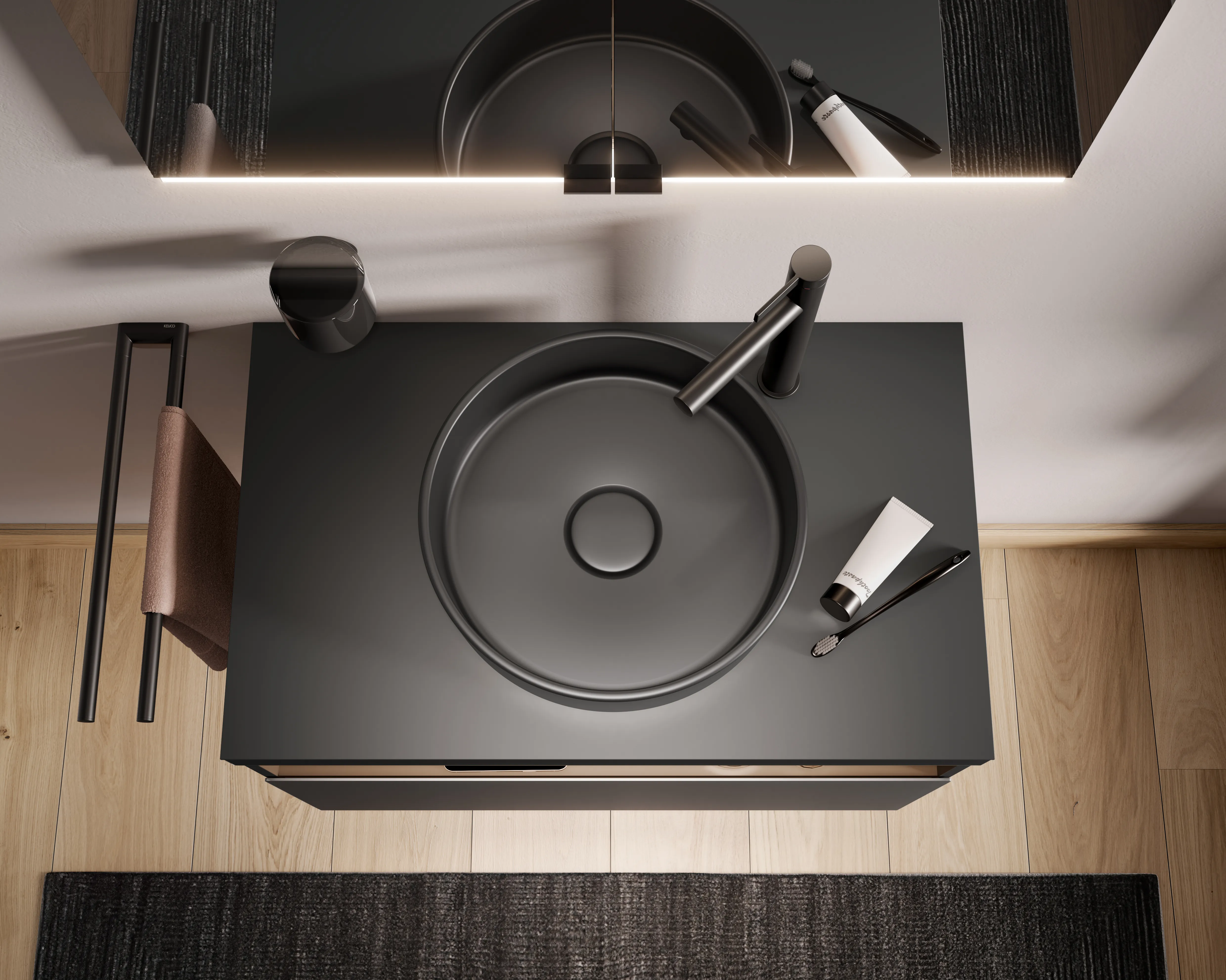 Без перелива, вкл. принудительный слив G 1 1/4 и керамическую крышку клапана слива в цвете керамики. Керамический умывальник комбинируется с тумбами под
