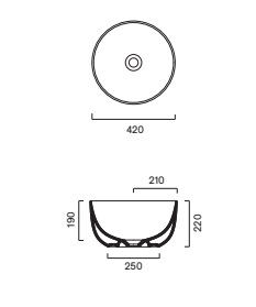 Эта накладная раковина из коллекции Sfera от бренда Catalano произведена в Италии. Она имеет круглую форму с диаметром 42 см и высотой 22 см. Изделие выполнено из керамики и не имеет отверстий под смеситель. Его поверхность матовая, а цвет — насыщенный черный (Nero satinato).