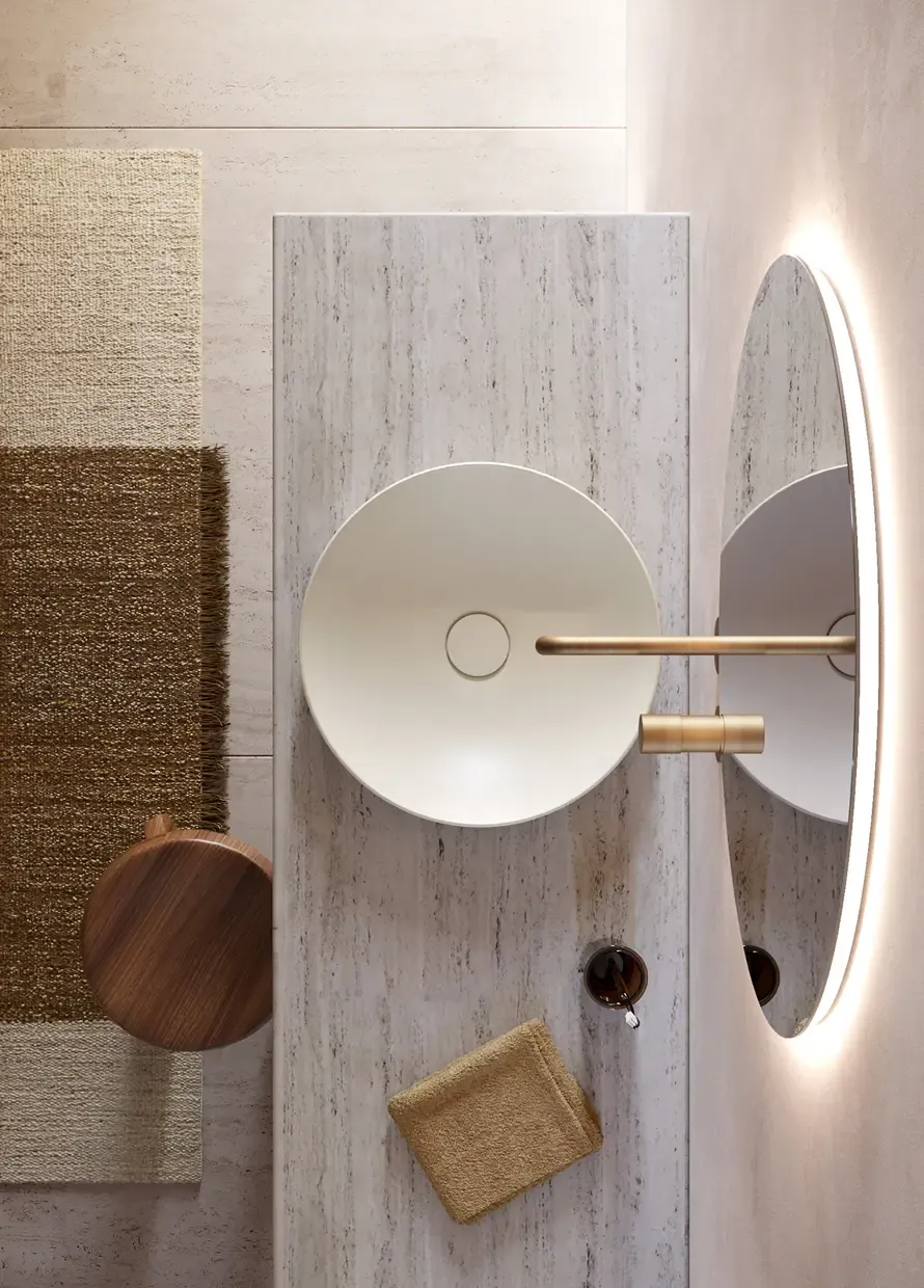 Эта раковина круглой формы с диаметром 45 см и высотой 14 см идеально подходит для установки встраиванием или подстольным монтажом. Изделие выполнено в глянцевом белом цвете Bianco lucido. Страна производства — Италия. В комплекте нет отверстий под смеситель, что позволяет выбрать максимально подходящий для вашего интерьера вариант монтажа.