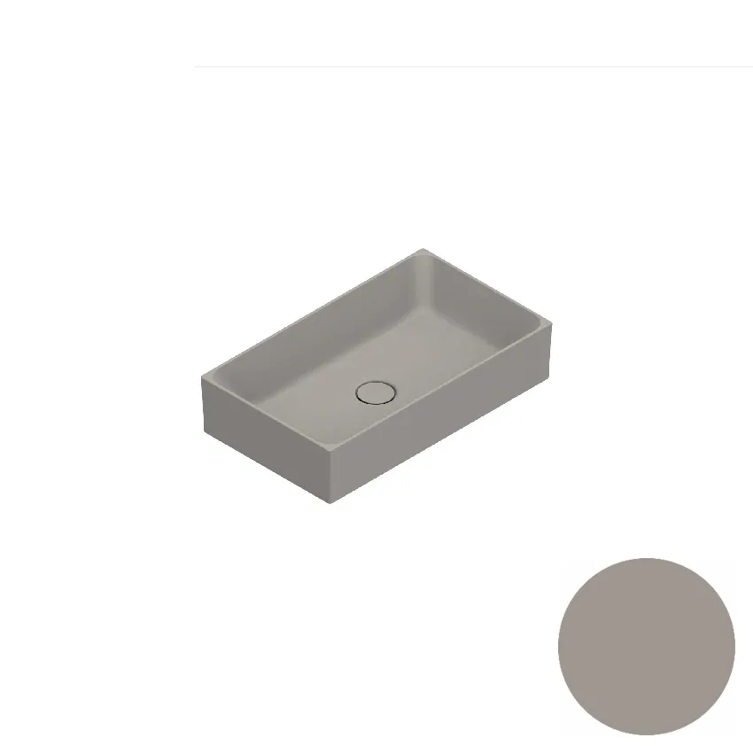 Эта накладная раковина из коллекции Premium от бренда Catalano производится в Италии. Она имеет прямоугольную форму и предназначена для установки на поверхность. Ее размеры составляют 60 см в ширину и 35 см в глубину, высота — 13 см. Изделие выполнено из матовой керамики коричневого оттенка. Раковина не имеет отверстий под смеситель и обладает грязеотталкивающими свойствами.