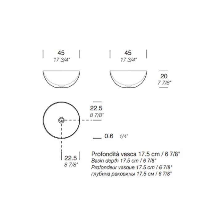 Раковина чаша Milldue BOWL 45 из CRISTALPLANT ,45х20, без отв для смесителя, белый матовый 8889*0 Bianco Opaco