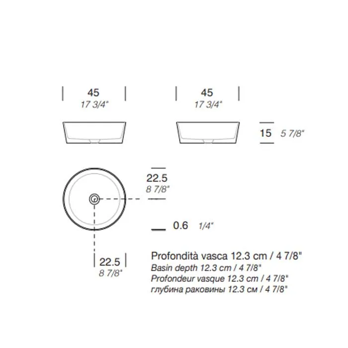 Раковина чаша Milldue KEEL 45 из CRISTALPLANT ,45х16, без отв для смесителя, белый матовый 8896*0 Bianco Opaco