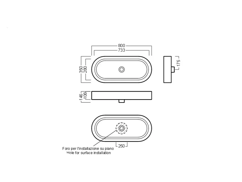 Раковина накладная HATRIA AREA Y0UF01, размер 80х35 см, цвет белый. Раковина без отверстий под смеситель и перелива. Устанавливается на столешницах, подстольях и мебели. Донный клапан и сифон приобретаются отдельно.