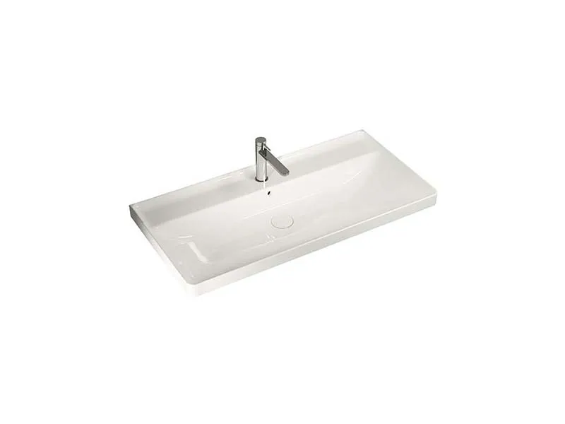Раковина подвесная\встраиваемая HATRIA CANALGRANDE Y1EL01, с переливом, 1 отверстие для смесителя, установка подвесная или на тумбу, крепления в комплекте, размер 100х50 см, цвет белый. Донный клапан и сифон приобретаются отдельно.