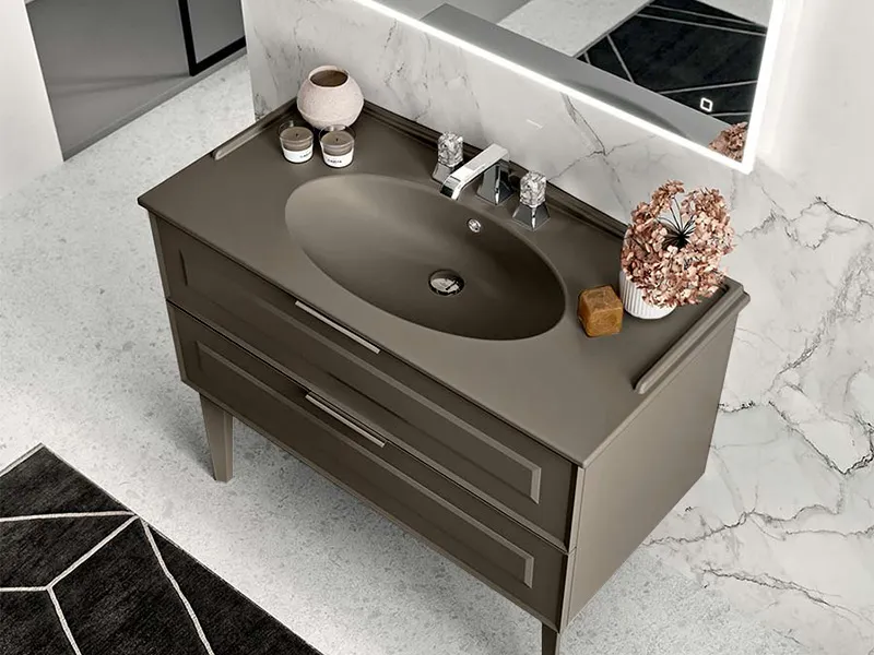 BERLONI BAGNO QUADRA VINTAGE Раковина керамическая для тумбы SUVBS(2C/3C)122CRV с одним отверстием под смеситель, с переливом. Размеры: 122х51,5x1.5h см,цвет Malta opaco. Продается только в комплекте с тумбой.