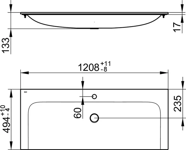 Раковина Keuco PLAN, 32980311201, белый, 1208х17х494 мм